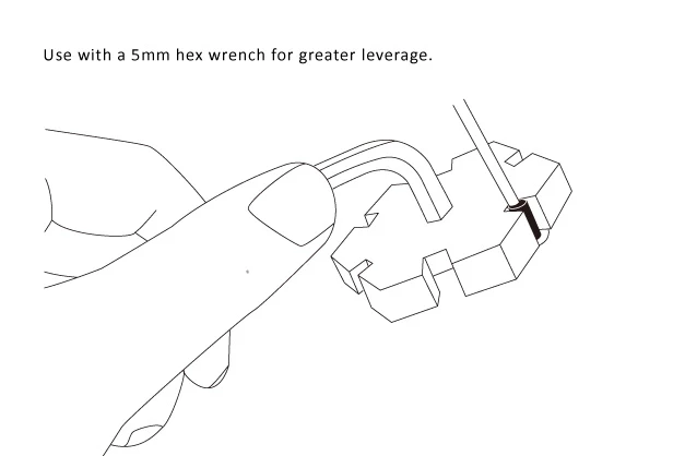 Du kan også sætte en 5mm. unbrakonøgle i værktøjet for ekstra kontrol.