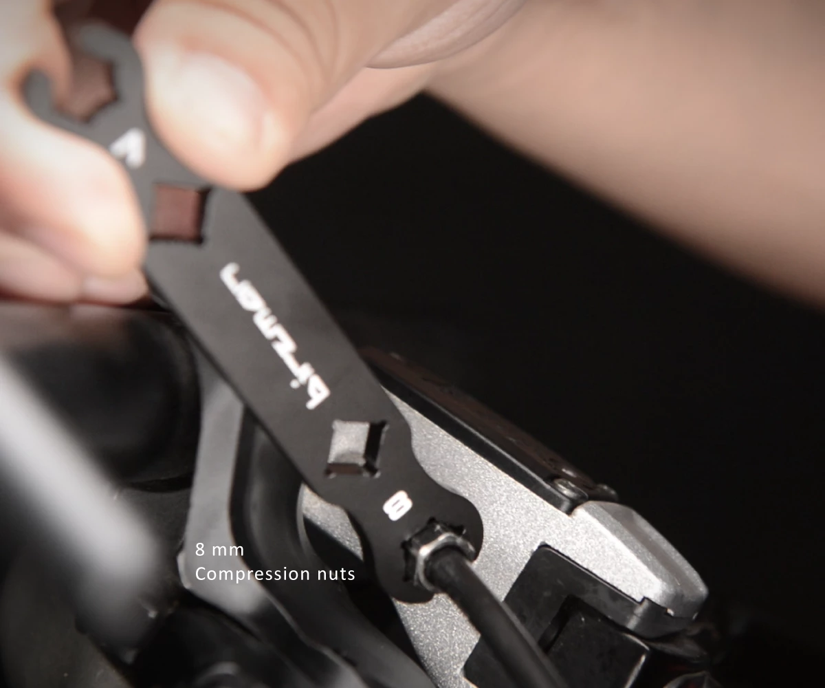 Denne smarte skruenøgle, kaldet en “Flare nut wrench” på engelsk bruges når du skal spænde og løsne skruer på hydrauliske skivebremser.