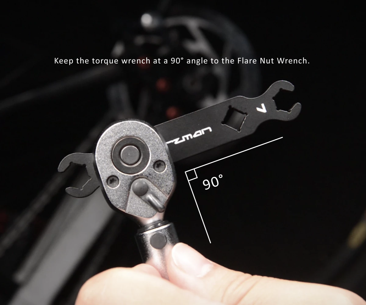 Længere inde på nøglen er der 1/4″ huller som kan bruges med 1/4″ momentnøgler så du kan spænde med det korrekte moment.