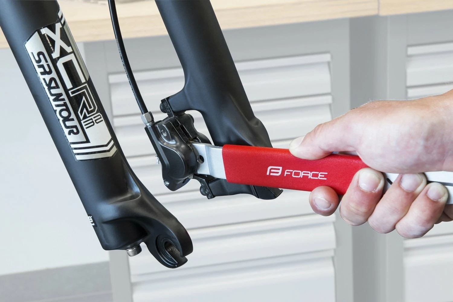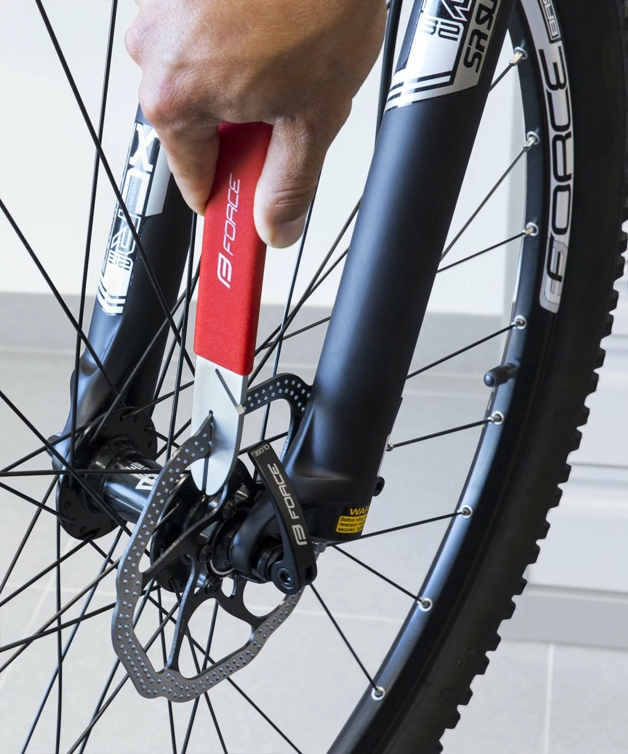 Force værktøj til retning af skævheder i bremseskiver og til at presse til stemplerne tilbage på skivebremser, f.eks. ved justering af kalibrene.
