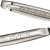 Pedros Dækjern i gul, lavet i en stærk plastik komposit, og med en udformning der gør det let at komme under og få fat på dækket. i den anden ende er der kroge til at sætte dækjernet fast på en eger.