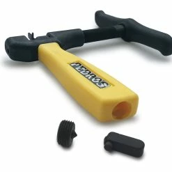 Stiften der skal trykke kæden fra hinanden har en fjederpåvirket guide, så du ikke får trykket stiften skæv og så den ikke knækker, når du bruger den. Det sikrer også, du ikke får et vrid i din kæde, og den dermed også holder længere tid.
