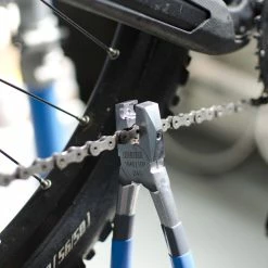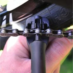 Den har en indsats der kan roteres, så den passer perfekt til 1-8speed kæder, en til 9/10speed kæder, en til 11speed kæder, og en til 11speed kæder der skal trykkes til sidst – for eksempel Campagnolo.