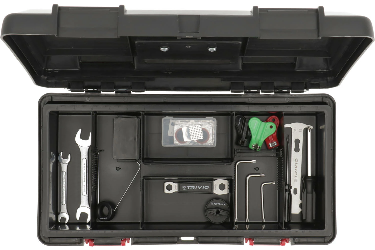 Opgradering af den smarte Tool Box Advance fra Trivio. Denne V2 model indeholder nye pg fornyede cykelværktøjer, der passer bedre til det nuværende behov indenfor cykel teknologi. Dertil er nogle uddaterede værktøjer blevet fjernet. Uanset behovet, så kan denne værktøjskasse i langt de fleste tilfælde løse det.